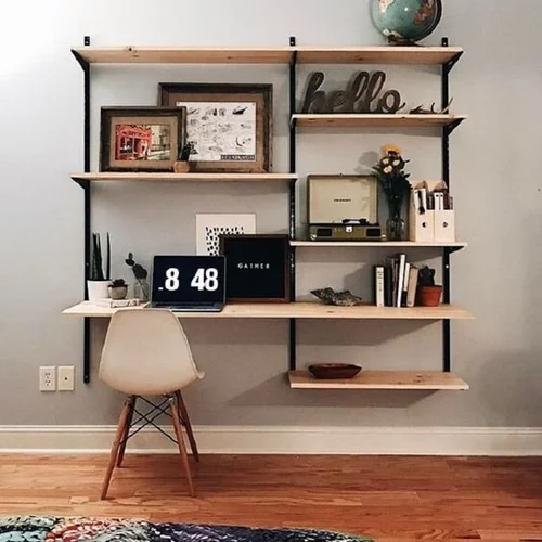 Diy Floating Desk And Shelves Home Office Design Home Office Decor Floating Desk from i.pinimg.com Shelves can be used for files, books or desk accessories, and they're also a. Jul 01, 2021 · home office organization ideas under $20. And two perfect shades of gray anchor the workspace. Jun 01, 2015 · the challenge with floating shelves lies in where/how the middle area gets supported, because the deeper shelf means that the middle section has less support. Tomcare floating shelves wall mounted set of 2 rustic wood wall shelves hanging shelf bathroom shower shelf kitchen storage display rack shelf decor for bathroom, kitchen, bedroom, living room,office 4.8 out of 5 stars 342 The pair floating shelves with chrome brackets can add storage space and a modern look to any room at home or the office. Easy and cheap organizing ideas for the home. A tall display cabinet with glass doors and deep drawer storage houses samples and supplies.